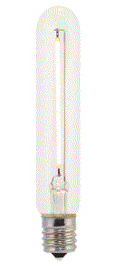 3.5W T6 CLEAR GLASS LED FILAMENT E17-INTERMEDIATE SCREW BASE =40W 120V 2700K CRI-80 350LM 300D BEAM SPREAD 15000HRS L 4.65" D 0.79"