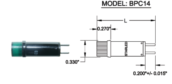 BPC14 LED T1-3/4 INDICATOR LIGHT CARTRIDGE (0.290"D MOUNTING) 28V/15mA ULTRA YELLOW (590-595NM) CLEAR FLUTED LENS 6 CHIP