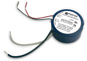 13W ROUND CC-CONSTANT CURRENT LED DRIVER 120VAC/IN 350mA 25VDC/OUT 1Kv SURGE PROTECTION W/PHASE CUT DIMMING TO 5% MLV/ELV/CL DIMMERS D 2.56" H 1.06"