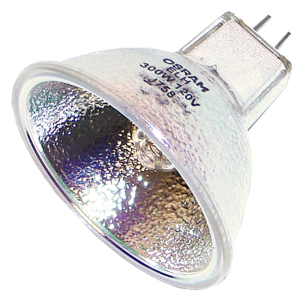 300W MR16 HALOGEN GY5.3 BIPIN FLAT PINS 120V 3350K 525LM 100CRI CLEAR OSRAM PROJECTOR LAMP 1.76"MOL 2"DIA