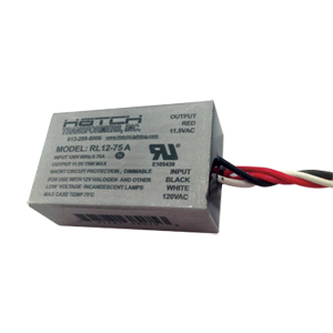 75W MAX LOW VOLTAGE HARDWIRED STEP DOWN TRANSFORMER 277VAC/IN 11.5VAC/OUT DIMMABLE 10W MIN PF: 0.98 UL CLASS 2 SIDE LEADS 2.08"L X 1.30"W X 0.79"H 0.15LBS EA