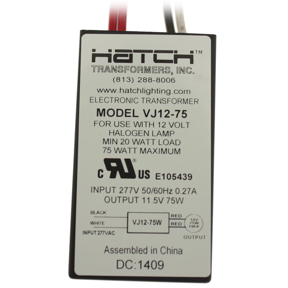 277VAC TO 12VAC ELECTRONIC TRANSFORMER 75W MAX 10W MIN SIDE LEAD EXIT DIMMING 0.3 LBS