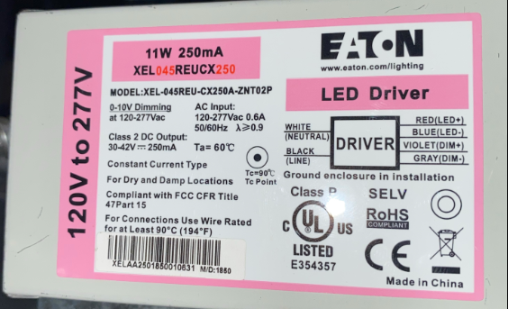 1W EATON CC-CONSTANT CURRENT LED DRIVER 250MA 120-277VAC/IN, 30-42VDC/OUT, CLASS 2, CLASS P