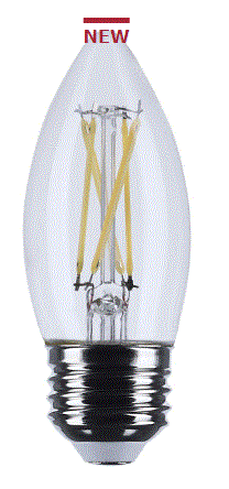 5.5B11/LED/930/CL/120V/E26 5.5W B11 CLEAR FILAMENT E26-MEDIUM SCREW BASE =60W 120V 3000K CRI>90+ 500LM 300DEG BEAM SPREAD DIMMABLE 15000HRS WET LOCATION RATED IP65 L 3.58" D 1.38" 0.04LBS |