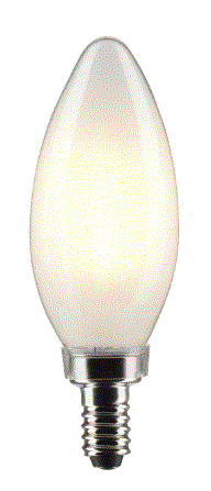5.5B11/LED/940/FR/120V/E12 5.5W LED FROSTED B11 BLUNT TIP E12-CANDELABRA SCREW BASE =60W 120V 4000K CRI>90+ 500LM DIMMABLE @ 120V ONLY 300DEG BEAM SPREAD 15000HRS WET LOCATION RATED T20/COMPLIANT L 3.97" D 1.38" 0.04LBS |