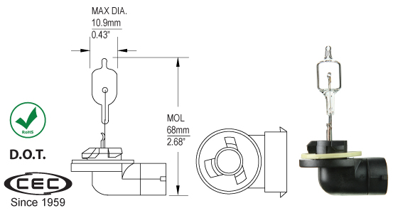 889-SYL 12.8V 27W HALOGEN T3-1/4 RIGHT |