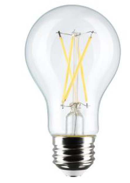 8A19/CL/LED/E26/950/120V 8W=60W CLEAR FILAMENT A19 LED 5000K E26-MEDIUM SCREW 120V 800LM 90-CRI DIMMABLE 320-D BEAM SPREAD 15,000 HR (WET/ROHS/CULUS) RATED **CA COMPLIANT** 4.02"L X 2.36"D 0.07 LB EA |