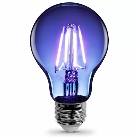 A19/BLB/LED 7W LED A19 BLACKLIGHT BLUE MEDIUM BASE E26 120V FILAMENT STYLE PARTY BULB NON-DIM 4.0"MOL 2.3"DIA |