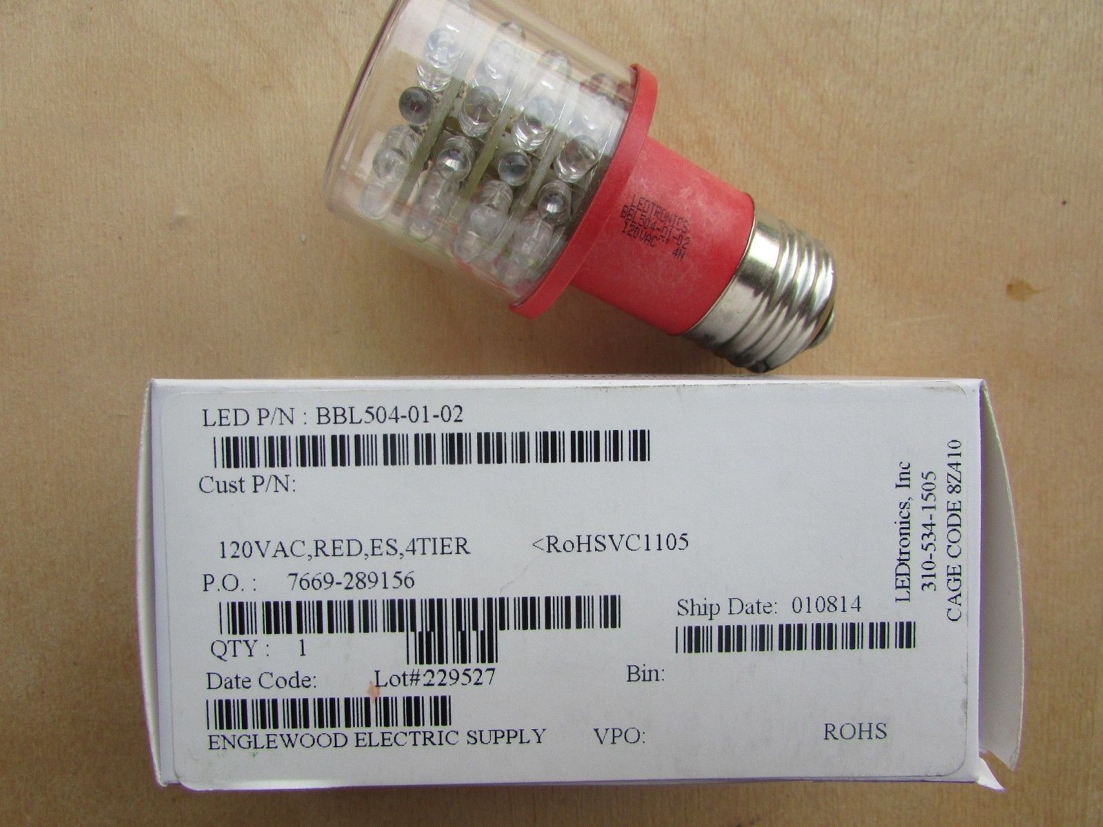 BBL-504-01-02 2.88W LED MEDIUM SCREW BASE E26 120V 55LM BEACON LIGHT INCANDESCENT REPLACEMENT 4-TIER LED ARRAY SUPER RED 0.023 - 0.030A CURRENT 3.5"MOL 1.75"DIA *NON-CANCELLABLE/NON-RETURNABLE/NON-REFUNDABLE* |