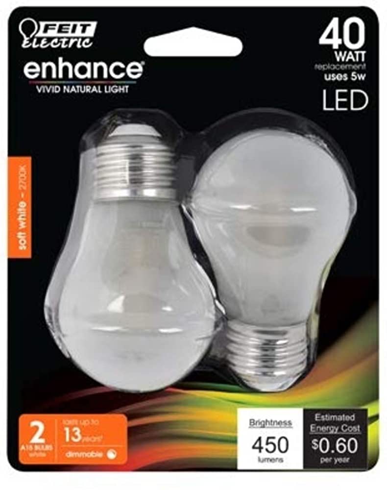 BPA1540C/927CA/2 5W LED A15 CANDELABRA BASE E12 120V 2700K =40W 450LM WHITE FROSTED GLASS 90CRI 180DEG 15,000HRS 3.25"MOL 1.75"DIA CA TITLE 20 COMPLIANT |