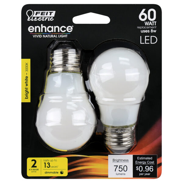 BPA1560W/930CA/FIL/2/RP 8W=60W A15 FROSTED E26-MEDIUM SCREW BASE 3000K CRI>90+ 750LM 120V 15000HRS 3.2"L X 1.85"D |