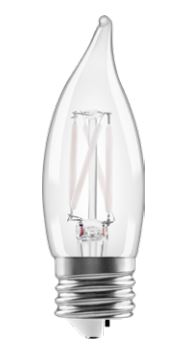 LED4B10BENTDIM927CL13YTLBL2 4W B10 BENT TIP LED FILAMENT E26 MED 2700K 90CRI 120V 350L 15000HR CLEAR DIMMABLE |