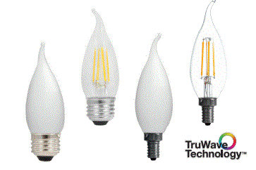 LED6.5B13CBENTDIM927CL13YTLRP2 6.5W CLEAR FILAMENT B13 BENT TIP E12-CANDELABRA SCREW BASE 120V =75W 2700K CRI>90 750LM DIMMABLE TRUWAVE 15000HR T20/COMPLAINT 2-PK L 5.55" D 1.69" 0.25LB |