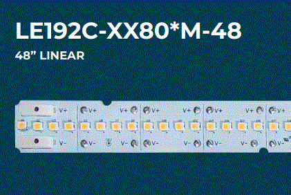 LE192C3080CRW48 48.2W 48"/4' LED MODULE 33.5V 4000K 1440mA 120D BEAM SPREAD CUTTABLE 50000HRS MTO=20PCS L 47.47" |