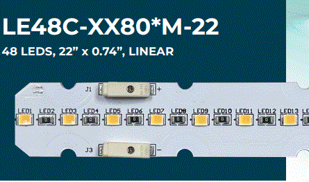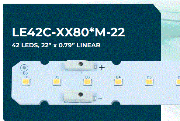 LE42C-5080*S-22 18.7W LED LINEAR MODULE 22" 5000K 3340LM 41.72V 120D VIEWING ANGLE 50000HRS L 22.00" W 0.79" |