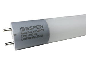 L48T8/850/12G-EB/AC LED 12W T8 MEDIUM BIPIN - G13 5000K 83CRI 1,800LM 325DEG 50,000HRS 48"MOL 1"DIA ESPEN TECHNOLOGY BALLAST COMPATIBLE INSTANT AND PROGRAMMED START TOUGH COAT |