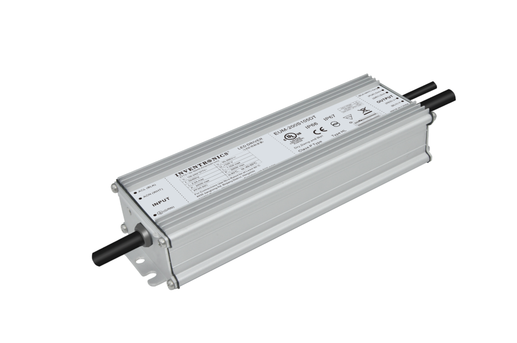 EUK-200S150DT 200W 90-305VAC-IN 67-190VDC-OUT 1050-1500MA DEFAULT 1050MA CC PROGRAMMABLE 0-10V DIMMABLE 8"L 2.7"W 1.6"H 2.4LBS |