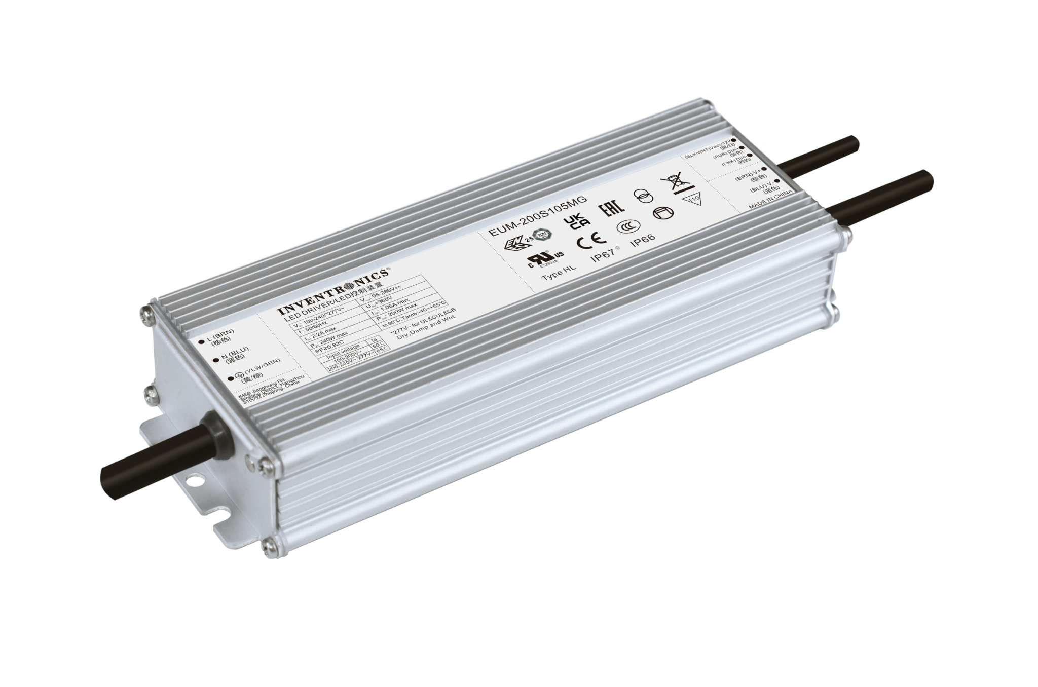 EUM-200S105LT 200W PROGRAMMABLE LED DRIVER CONSTANT CURRENT CC 90-305VAC-IN 127-300VDC-IN 95-286VDC-OUT 700mA DEFAULT 700mA-1050mA RANGE 200W MAX DIMMABLE 0-10V PWM 3-TIMER MODES INV DIGITAL DIMMING DIM TO OFF FUNCTIONALITY WET & HAZARDOUS LOCATION RATED IP66 *IN-HOUSE PROGRAMMING NEED mA* |