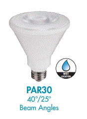 L30P38D2550KSP 30W 120V 3000LU 80CRI 5000K 15DEGREE BEAM SPREAD PAR38 =250W E26 MEDIUM BASE 25000HRS |