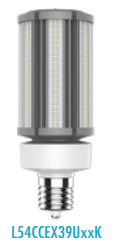 L54CCEX39UCCT 54W CORN COB HID REPLACEMENT LED EX39-EXCLUSIONARY MOGUL SCREW BASE =250W HID 100V-277V TYPE B-BALLAST BYPASS CCT SELECT-3000K/4000K/5000K CRI>85 7560LM 50000HR L 9.5" D 3.3" 2.00LBS |