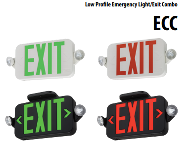 ECC-G-LLH-M6 1.1W LOW PROFILE EMERGENCY LIGHT/EXIT COMBO 120V/277V GREEN LETTERING L 16.00" D 1.94" H 7.25" 2.15LBS |