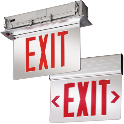EDGR-1-RMR-EL-SD-M4 RECESSED LED EDGE-LIT EXIT SIGN SINGLE FACE, RED ON MIRROR, NICKEL-CADMIUM BATTERY, SELF-DIAGNOSTICS 120/277V 13.0"L 1.8"D 8.0"H 6.8 LBS |