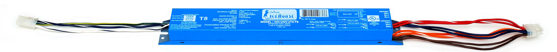 IH2-UNV-270-T8 1L 2L F58T8 OR F70T8 120V 277V HPF -22F DEG STARTING TEMP |