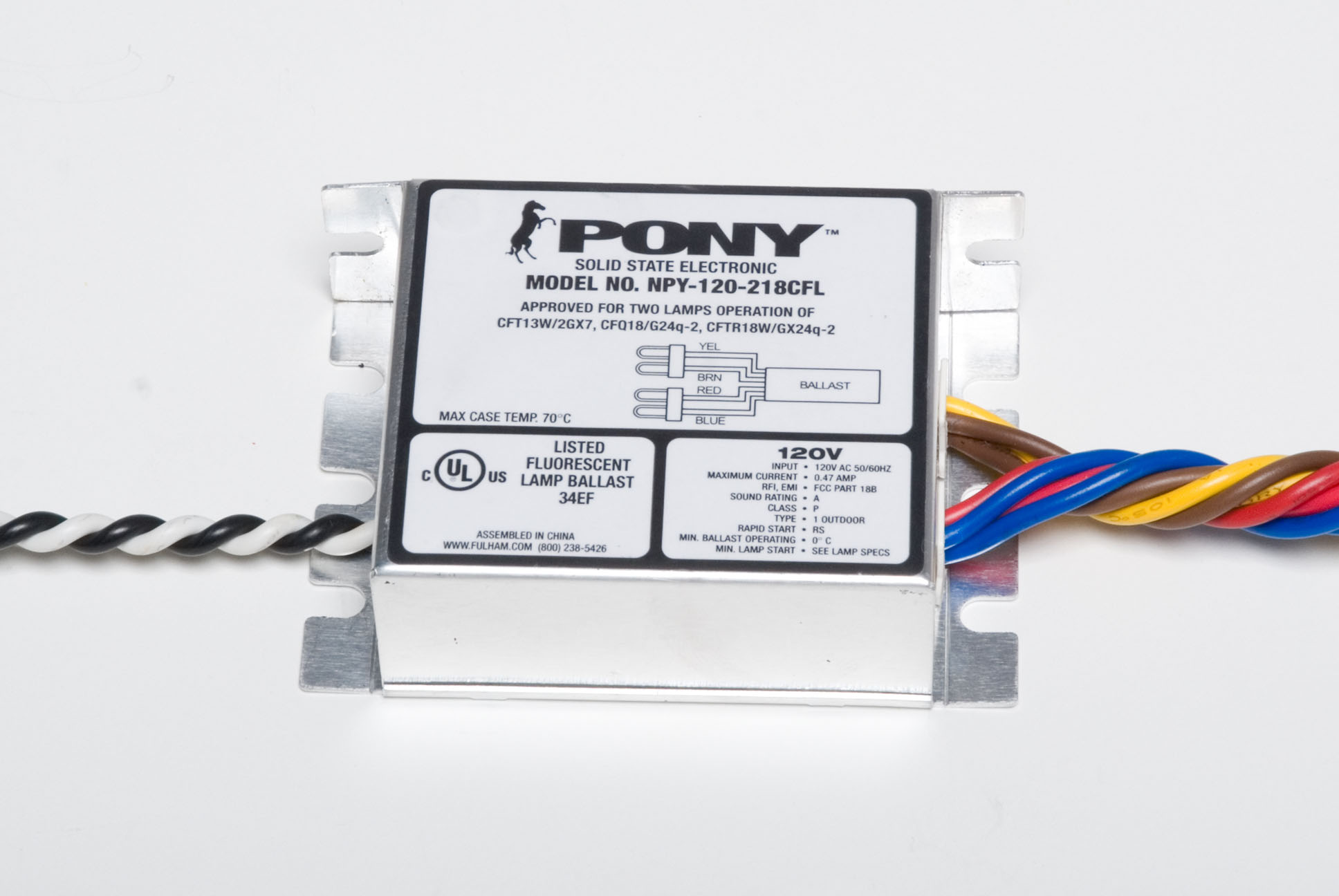 NPY-120-218-CFL 13W 18W 2L CFL ELECTRONIC BALLAST 120V PONY TWIN TRIPLE QUAD TUBE RAPID START L 3.36" W 2.39" H 1.02" |