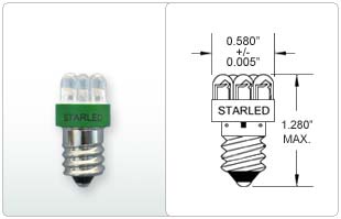 CSB144SFG-18V-DP-I LED 18V S6 CANDELABRA SCREW - E12 1.35"MOL 0.615"DIA ULTRA PURE GREEN 520-530NM DUAL POLARITY STARLED |