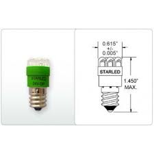 CSB1447WC6NW-30V/10-DP-I 0.3W S6 0.62" STARLED CANDELABRA SCREW - E12 30V 1.45"MOL ULTRA PURE GREEN 0.62"DIA |