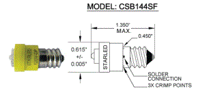 CSB1447WCU2-30V/10-DP-I 0.3W S6 0.62" STARLED CANDELABRA SCREW - E12 30V 1.45"MOL ULTRA HI EFF. RED 0.62"DIA |