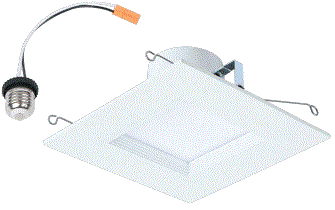 RSQ6LS9FSD2W1EWH 6.2W 10.5W 6" LED SQUARE RECESSED LIGHT W/E26-MEDIUM SCREW ADAPTER 120V WATTAGE & CCT SELECTABLE 2700K 3000K 3500K 4000K 5000K CRI-92 680LM-1097LM LE/TE DIMMING WHITE FINISH T20/T24-COMPLIANT UL LISTED ENERGY SAVING L 7.25" H 3.18" |