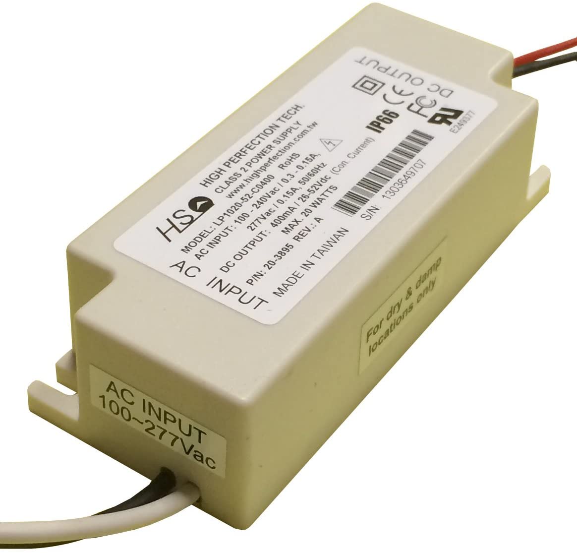 LP1020-52-C0400 MAGTECH 20W PREMIER CONSTANT CURRENT LED DRIVER 100-277V INPUT 24-52V 400MA OUPUT SMALL RECTANGLE FORM FACTOR |