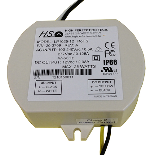 LP1025-12 25W LED DRIVER CONSTANT VOLTAGE CV 100-277VAC-IN 12V-OUT 2080MA 25W OUTPUT OBLONG FORM FACTOR 100000HRS IP66 OUTDOOR RATED |
