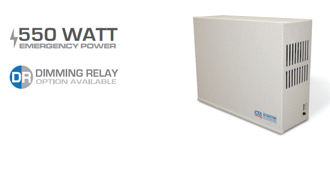 IIS-550-I-DR 550W SINE WAVE OUTPUT INVERTER 120/277V 60HZ FOR USE WITH FLUORESCENT INCANDESCENT AND LED 90 MIN OPERATION TIME,INTERRUPTABLE W/DIMMING RELAYS FOR 0-10V DIMMING CONTACT TEST SWITCH INCLUDED (GREEN/RED/YELLOW INDICATOR LIGHTS) ***BATTERY NOT INCLUDED*** W 23.00" H 17.83" H 8.20" 145LBS |