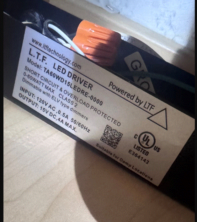 TA60WD12LEDB15RE 60W 12V DC ELECTRONIC TRANSFORMER 120V INDOOR RATED LTF |