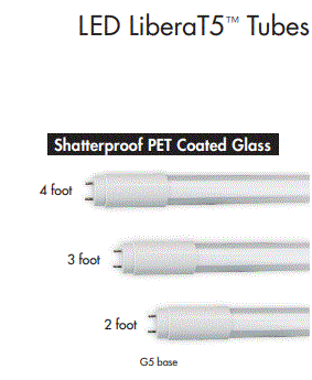LT5HE09B150K LIBERA 9W=14W PET COATED, FROSTED GLASS T5 24"/2' 5000K CRI-80 G5-MIN-BIPIN BASE 120-277V TYPE B-BALLAST BYPASS, SINGLE-ENDED, 1200LM SHATTERPROOF 180' BEAM ANGLE (NON-SHUNT) SOCKETS 50000HRS |