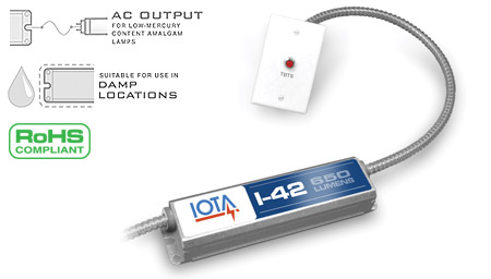 I-42-EM-A-HALO IOTA EMERGENCY BALLAST COMPACT FLUORESCENT 13W-42W CF W/TEST SWITCH DAMP LOCATION NOT TITLE 20 COMPLIANT NON-RETURNABLE NON-REFUNDABLE |