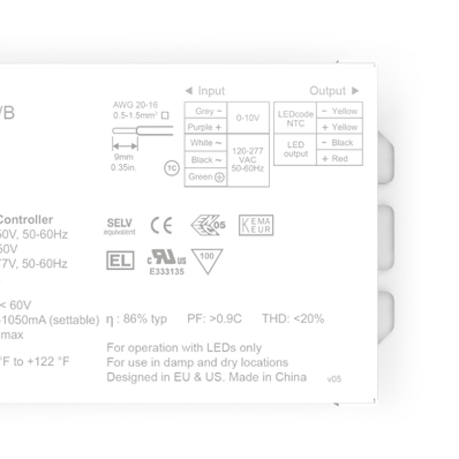 SL22S-M1Z1A1-350MA-LOG eldoLED SOLODRIVE 22W M1Z1A1 100V-277VAC/IN 2V-42VDC/OUT PROGRAMMED TO 500mA PF>0.90 0-10V DALI-2 LEDcode2 1 CONTROL CHANNEL LINEAR DIMMING SMALL FORM FACTOR W/SIDE LEADS L 3.65" W 1.22" H 1.00" 0.50LBS |
