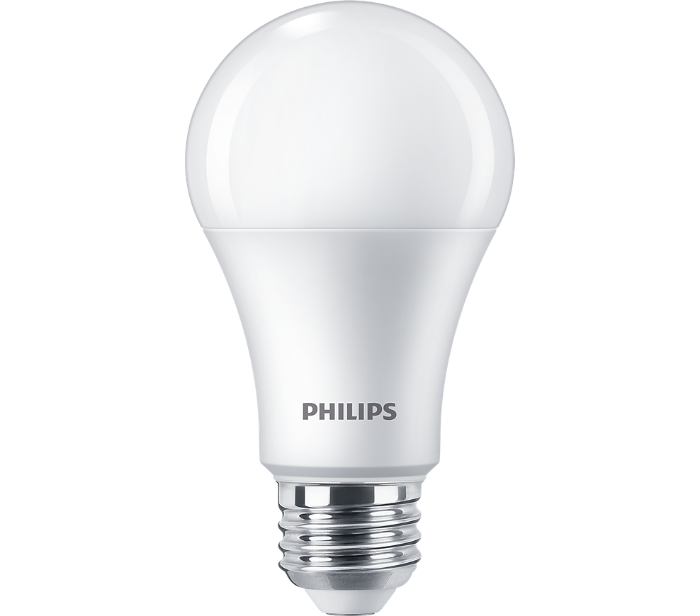 10.5A19/LED/827/ND-120V-2PK ON NAT'L B/O *** LED 10.5W 120V A19 MEDIUM SCREW - E26 2700K 80CRI 1,000LM 10,950HRS 4"MOL 2.50"DIA PHILIPS NOT CA TITLE 20 COMPLIANT |