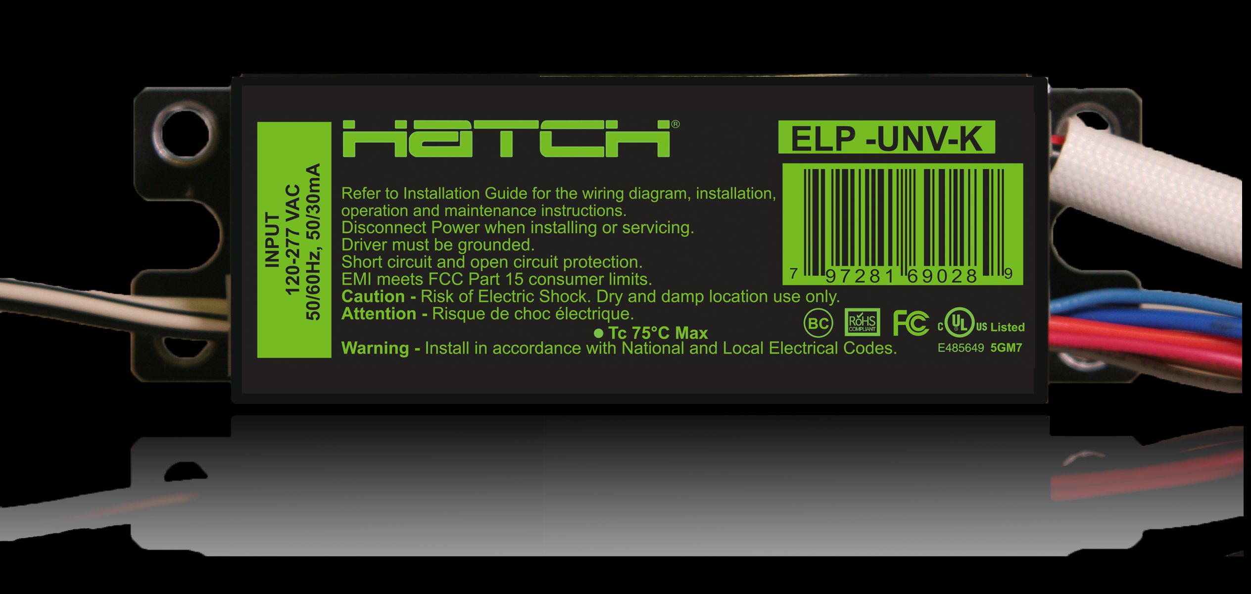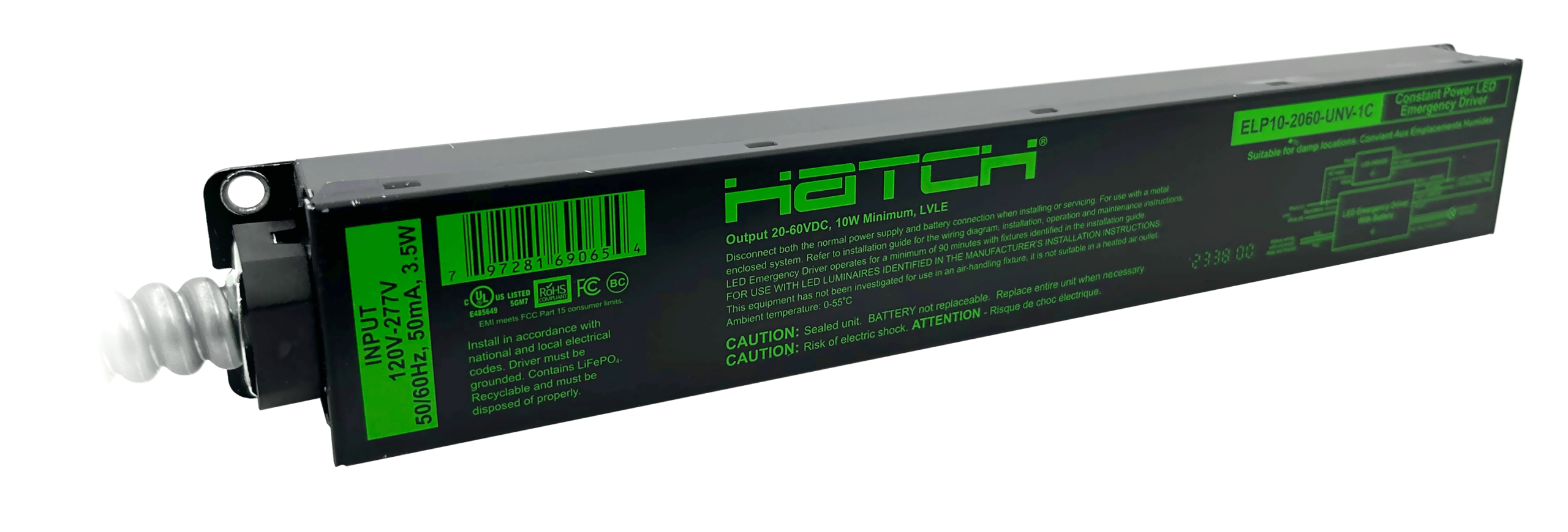ELP14-2060-UNV 14W EMERGENCY LED DRIVER CONSTANT CURRENT CC 120V-277VAC-IN 20-60VDC-OUT 90 MINUTE OPERATION |