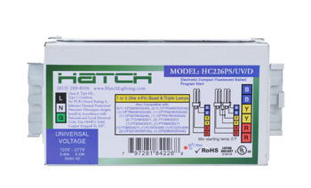 HC226PS/UV/D 1L 2L CFL ELECTRONIC BALLAST 120-277V PROGRAMMED START BOTTOM QUICK CONNECT NO STUDS 26W QUAD & TRIPLE 32W 42W 57W 4P TRIPLE CFL 18W 24W 36W 39W 40W 2G11 4.6"L 2.4"W 1.0"H |