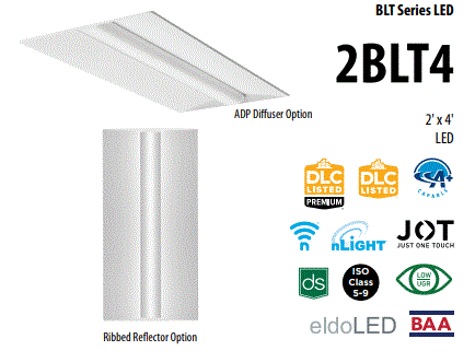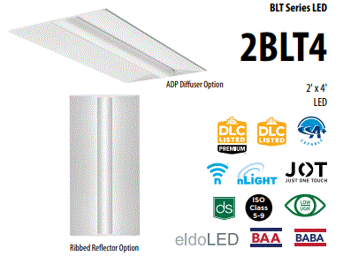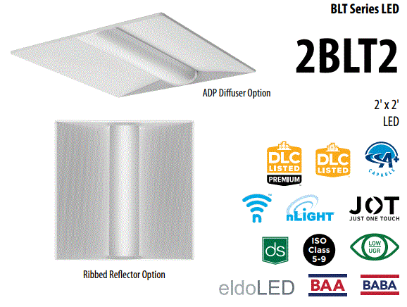 2BLT2-20L-ADP-EZ1-LP835 16.00W 2'X2' VOLUMETRIC LED RECESED FIXTURE 3500K CRI-82 2000LM 120V-277V CURVED RIBBED DIFFUSER ELDO DRIVER DIM TO 1% 60000HRS L 23.75" W 23.75" H 2.38" 11.10LBS |