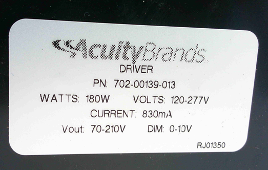 702-00139-013 180W LED DRIVER 120-277V-IN 70-210V-OUT 830mA DIMMABLE 0-10V |