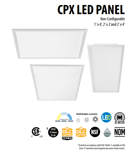CPX-2X2-ALO7-SWW7-M4 LITHONIA 2X2 LED PANEL DUAL SELECTABLE 19W-37W 120-277V 3500K 4000K 5000K 80CRI 2399LM-4564LM DIMMABLE 50,000HRS 23.8"L 23.8"W 1.7"H 6.39LBS |