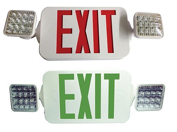 FHEC35RSD FIREHORSE EXIT AND EMERGENCY LIGHT COMBO THIN LED WITH LED HEADS WHITE HOUSING RED LETTERS SELF DIAGNOSTIC |