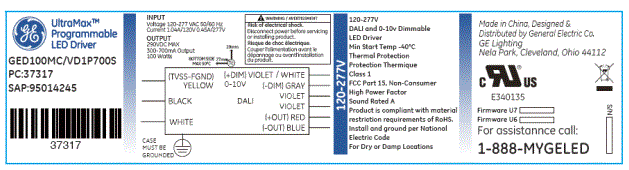 35-225097R23-470MA 150W GE PROGRAMMABLE OUTDOOR DIMMING DRIVER 277-480VAC INPUT 227V-300VA OUTPUT 470mA DALI 0-10V DIMMING DRY DAMP LOCATION RATED |