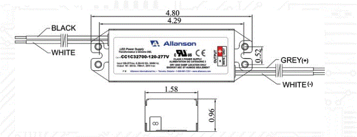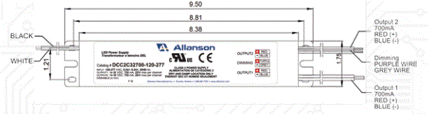 CC2C32700-120-277 LED DRIVER CONSTANT CURRENT CC 120-277VAC-IN 10-32V-OUT 700mA ALLANSON COMMERCIAL KITCHEN 2 CIRCUIT OUTPUT L 9.50" W 1.75" H 1.15" |
