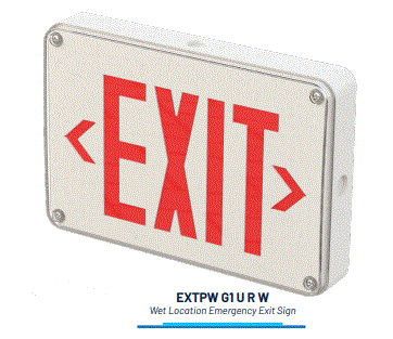 EXTPW-G1-U-R-W 2.2W LED EMERGENCY EXIT SIGN WET LOCATION RATED 120V/277VAC 90MIN RUN TIME RED LETTERING W/WHITE FINISH FLAME RETARDANT W 13.00" H 8.88" D 2.50" |