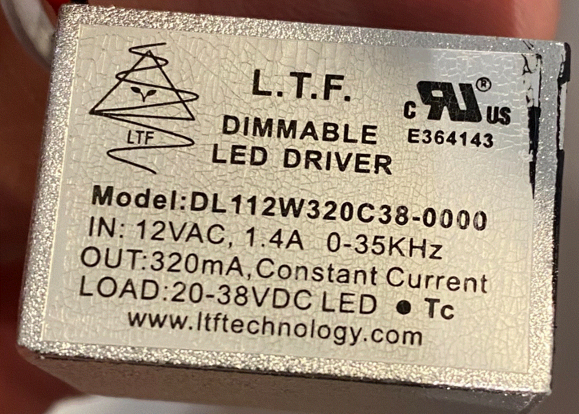 DL112W320C38-0000 112W LED DRIVER CONSTANT CURRENT CC 12VAC-IN 320mA 20V-38VDC-OUT BOTTOM FEED L.T.F. |